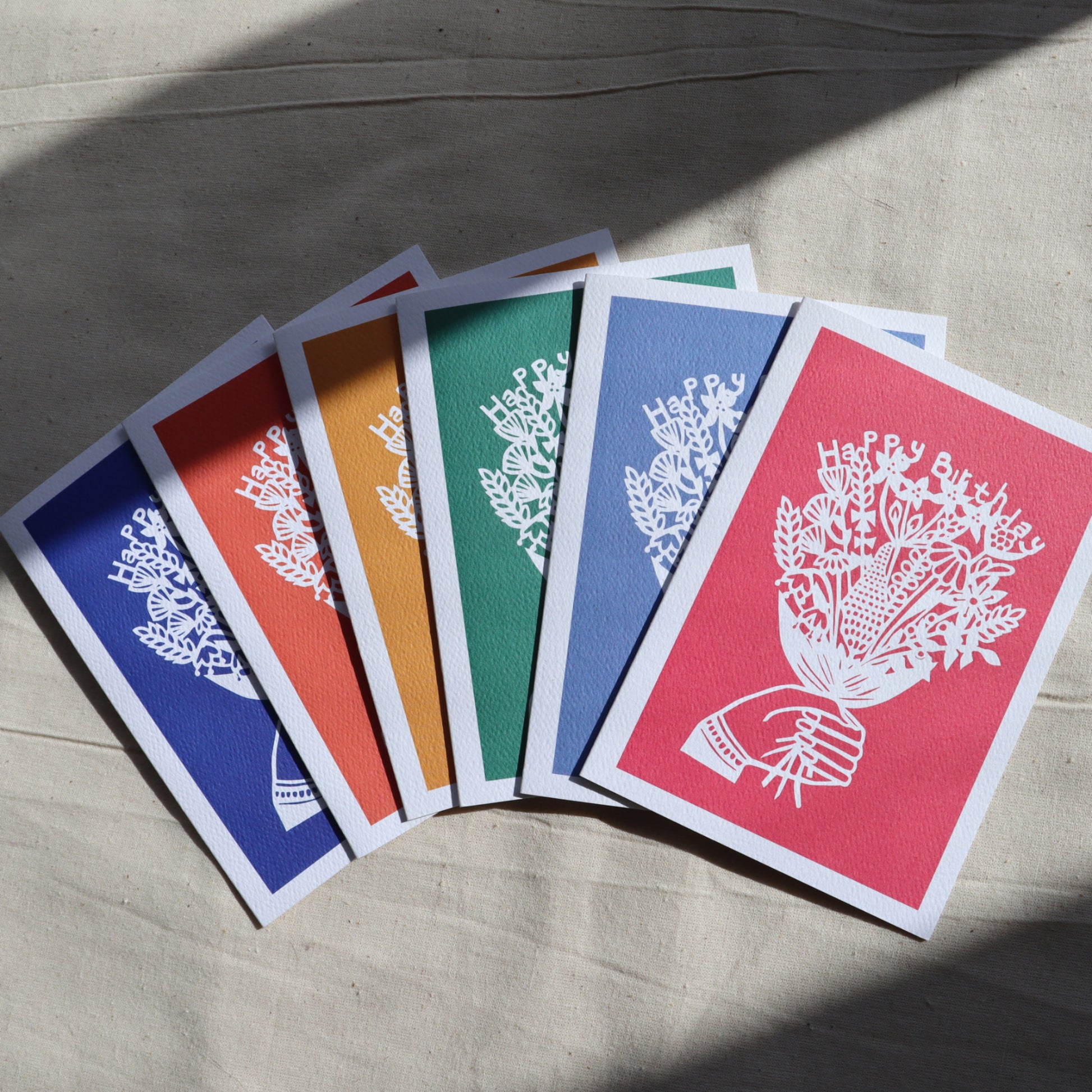 Happy Birthday Block Flowers card pack of 6