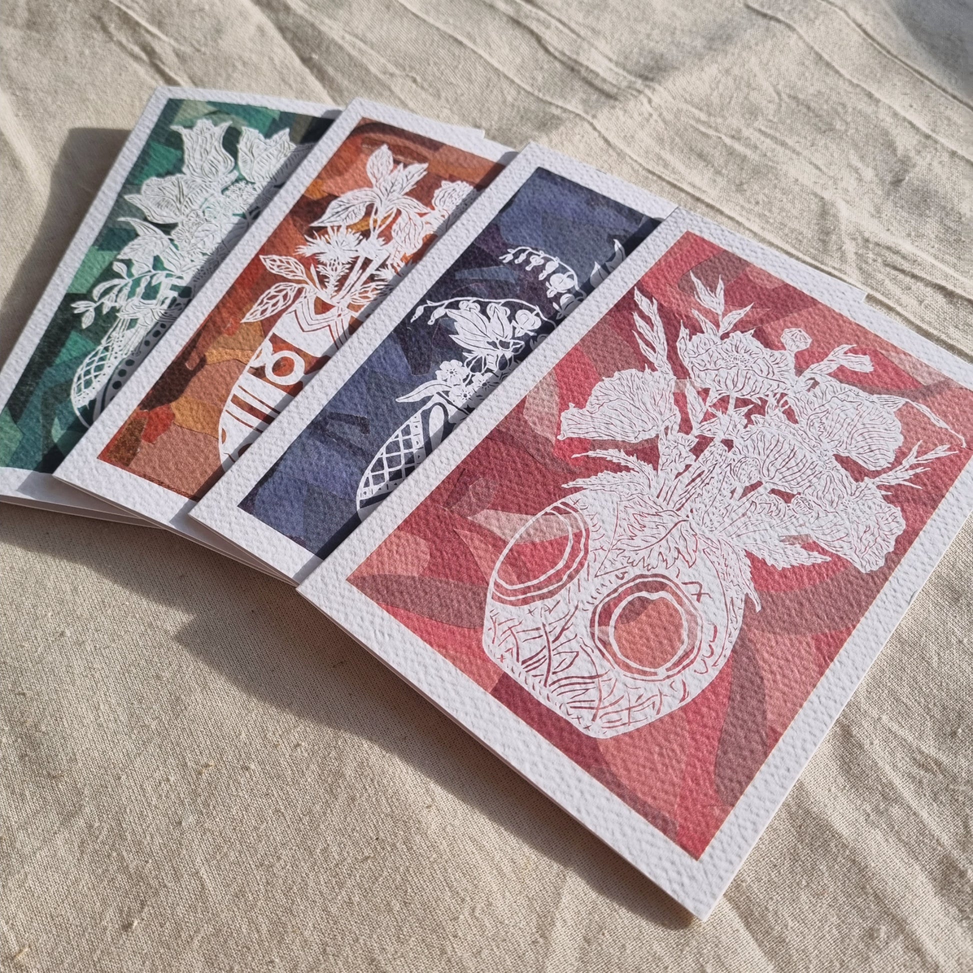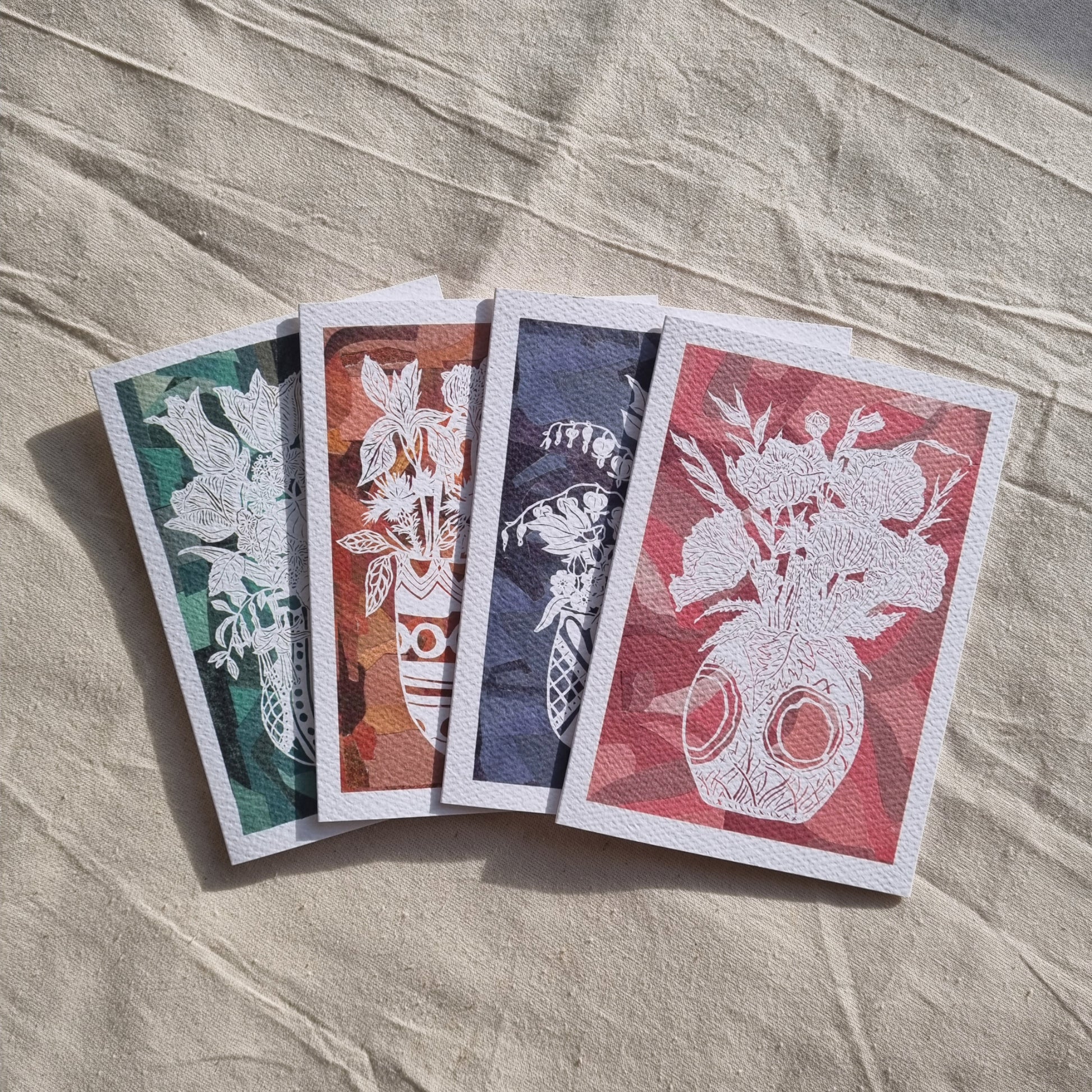 Handmade paper cutting and collage techniques come together in this series to create both cards and prints that pay homage to the Bloomsbury artist, Vanessa Bell, and her Post-Impressionist style of working. From researching Bell's garden, which informed so much of her work, at Charleston Farmhouse in Sussex, this series shows off the sheer range of blooms that were grown in Vanessa's day, and still are flourishing there today under the Charleston Trust