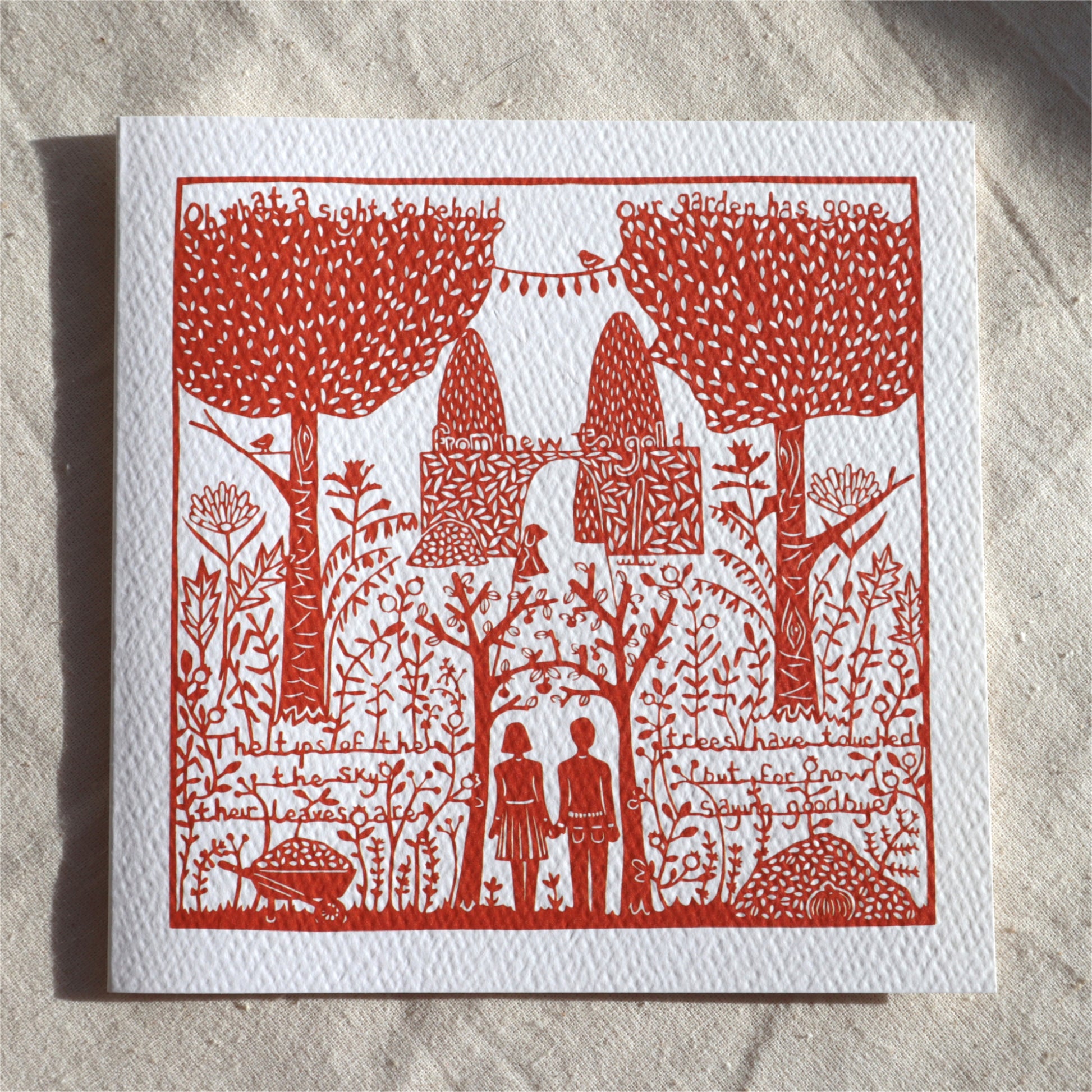 The Garden Series is a range of handmade paper cuts made by Gemma Barnett. All four designs; Spring Garden, Summer Garden, Autumn Garden & Winter Garden are available as both single greetings cards and as part of a pack